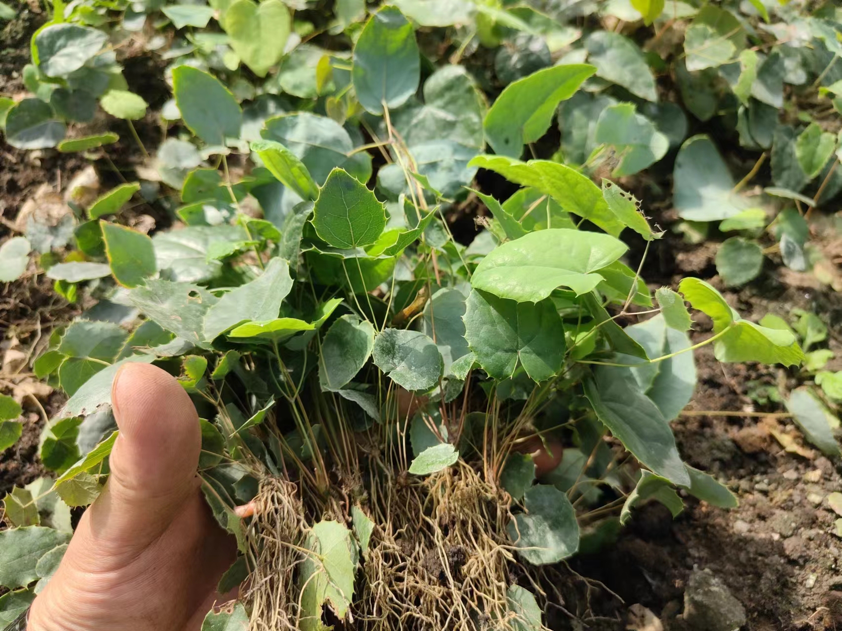 ⑥、淫羊藿 淫羊藿是典型的喜阴植物,适宜在散射光充足、避免强光直射的环境中生长,而树林的树冠能形成天然的遮阴层(遮光率通常需60%-80%),恰好满足其对光照的需求,防止叶片因暴晒而枯黄。 这种天然遮阴可省去人工搭建遮阳棚的成本,降低种植管理难度。 淫羊藿根系较浅,主要分布在土壤表层,与树木的深层根系分布不重叠,可减少对土壤养分的竞争,实现土地资源的分层利用。
