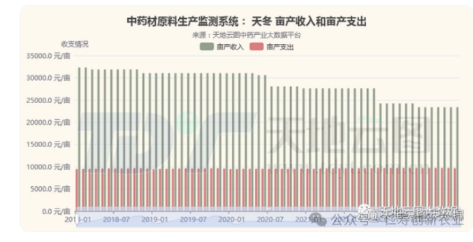天冬的亩产净收入仍保持在14000元/亩上下,相对其他作物仍具有较高收益。